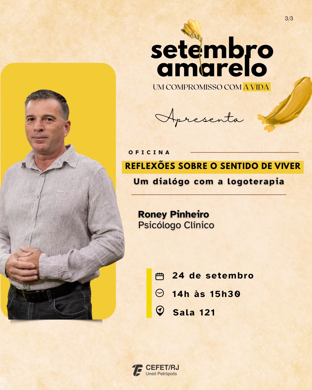 Ministrada por Roney Pinheiro: graduado em Psicologia pela UCP, pós-graduado em Logoterapia e Análise Existencial pelo Guindani Instituto de Ensino Pesquisa e Gestão S/S Ltda (FaCiência) e especialista em Logoterapia Clínica pela Associação de Logoterapia Viktor Emil Frankl (ALVEF).