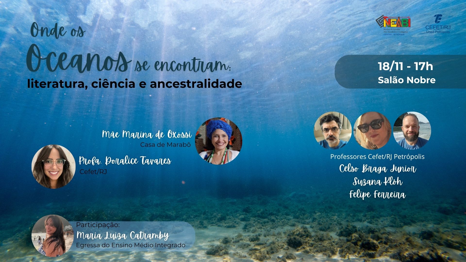 “Onde os oceanos se encontram: literatura, ciência e ancestralidade” é o tema da mesa-redonda que será realizada no Cefet/RJ Petrópolis no próximo dia 18 de novembro (terça-feira). Em parceria com o Núcleo de Estudos Afro-brasileiros e Indígenas (Neabi) da unidade, o evento acontecerá no Salão Nobre a partir das 17h.