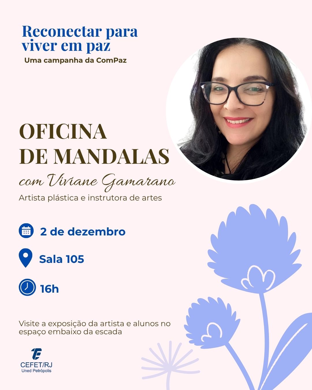 A Comissão Permanente para Promoção de uma Cultura de Paz (Compaz) promove no dia 2 de dezembro (terça-feira) a Oficina de Mandalas, com a artista plástica e instrutora de artes...