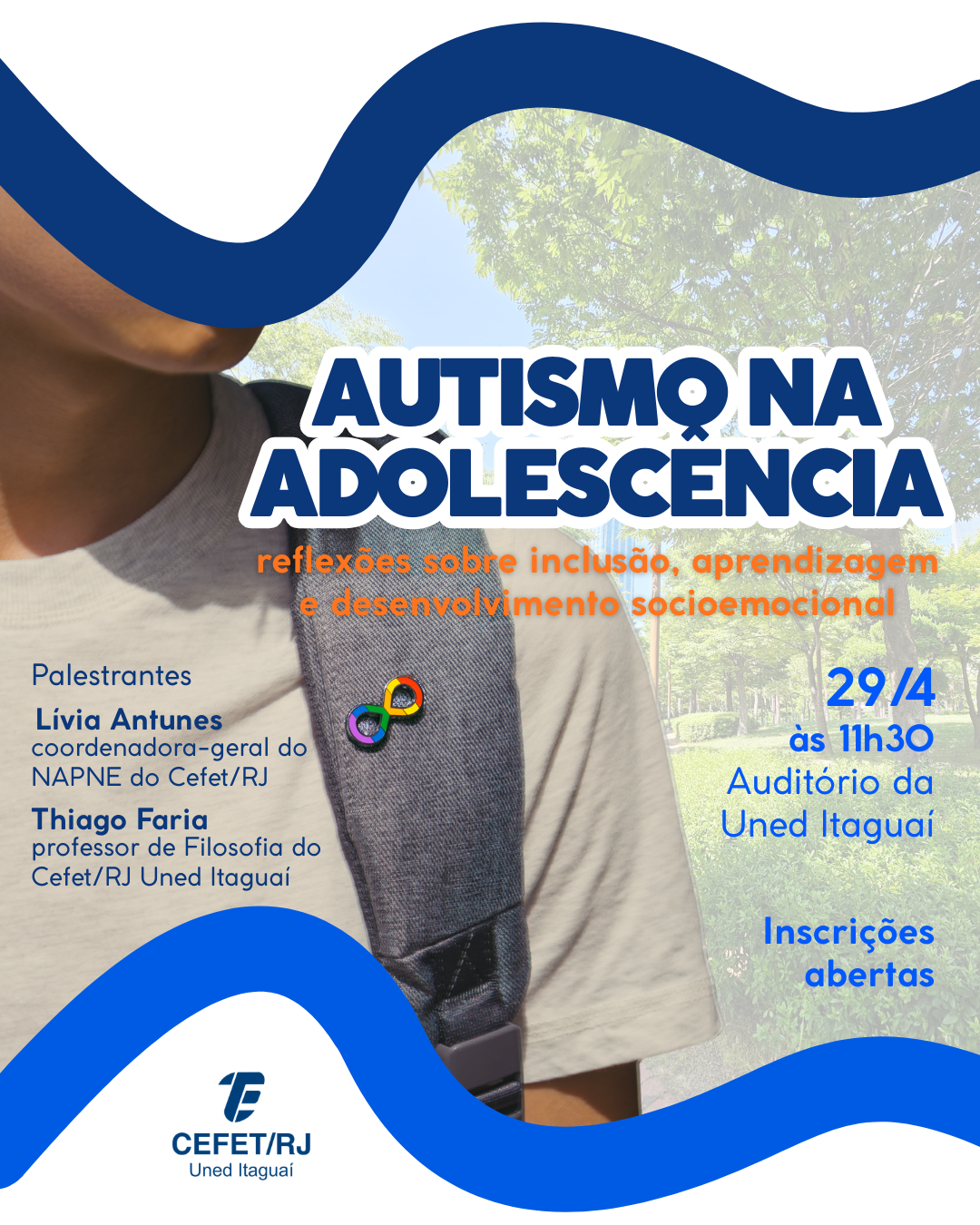 A iniciativa é organizada pelo NAPNE e pela coordenação da educação profissional técnica de nível médio da Uned Itaguaí. De acordo com os responsáveis, o evento tem papel formativo, social e transformador, pois busca promover a conscientização. “A adolescência já é uma fase complexa por si só e, quando associada ao Transtorno do Espectro Autista (TEA), surgem desafios específicos relacionados à identidade, à interação social, à autonomia e à saúde emocional. Discutir esse tema ajuda a combater preconceitos e ampliar a compreensão da sociedade, sobretudo no contexto escolar”, destacou Simone Benevides, coordenadora do NAPNE da Uned Itaguaí.
