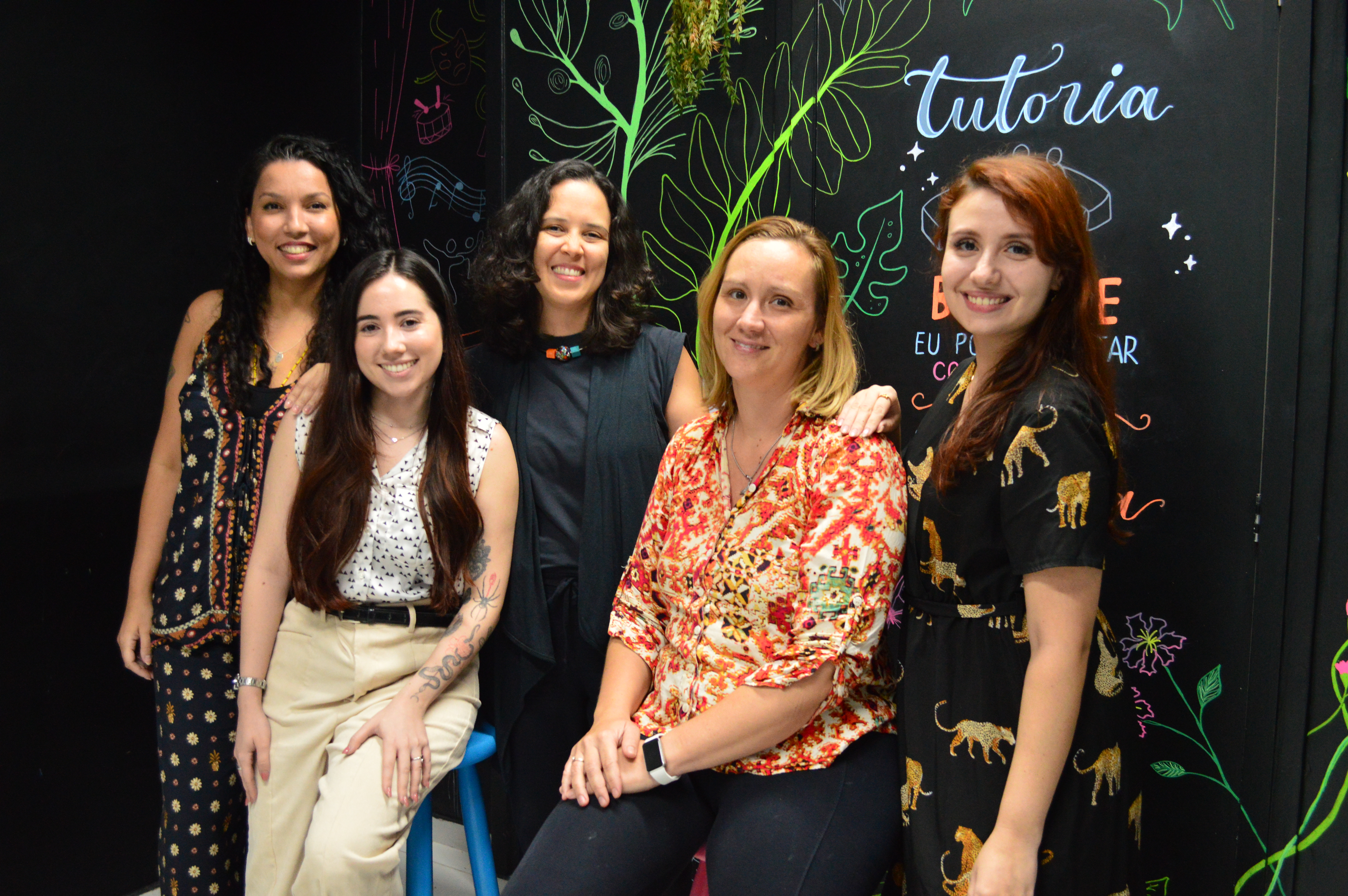 Da esq. para dir. Aline Lourenço (assistente social), Natália Knopp (pedagoga), Juliana Costa (psicóloga), Pricila Loretti (socióloga) e Gabriela Martins (psicóloga) irão atuar nas atividades do projeto Tutoria em 2026. O objetivo é colaborar no aperfeiçoamento das ações de permanência e êxito no Cefet/RJ