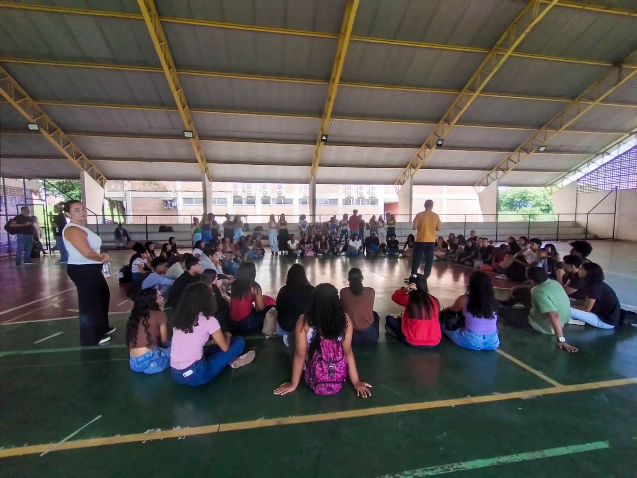 Recepção dos novos alunos do preparatório na quadra