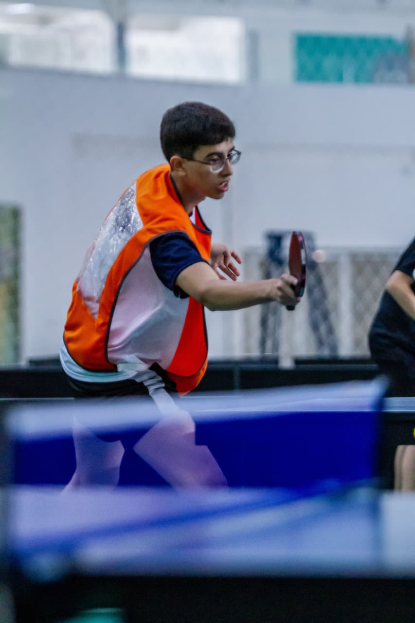 Aluno da Uned Nova Iguaçu durante a prática de tênis de mesa
